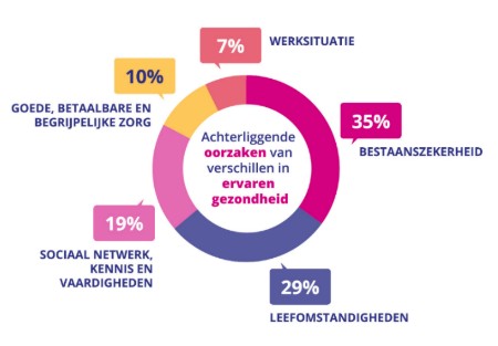 Gezondheidsverschillen tussen inwoners ontstaan vaak niet door één oorzaak, maar door een samenspel van factoren, zoals leefomgeving, sociaaleconomische omstandigheden en toegang tot zorg en ondersteuning (zie voor de cijfers hieronder figuur 1 van Pharos). Deze gezondheidsverschillen willen we verkleinen vanuit het netwerk GezondVeluwe.